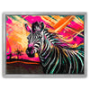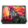 Ideal for those who love zoo animals or have a fascination with zebras and other exotic creatures, this artwork would make a perfect addition to any space that celebrates wildlife and vibrant, colorful designs.